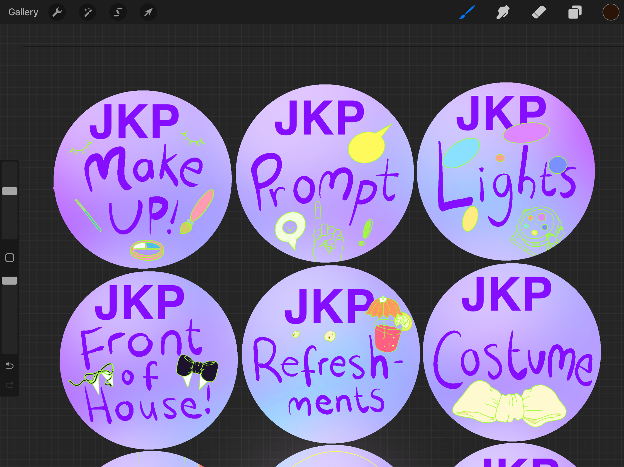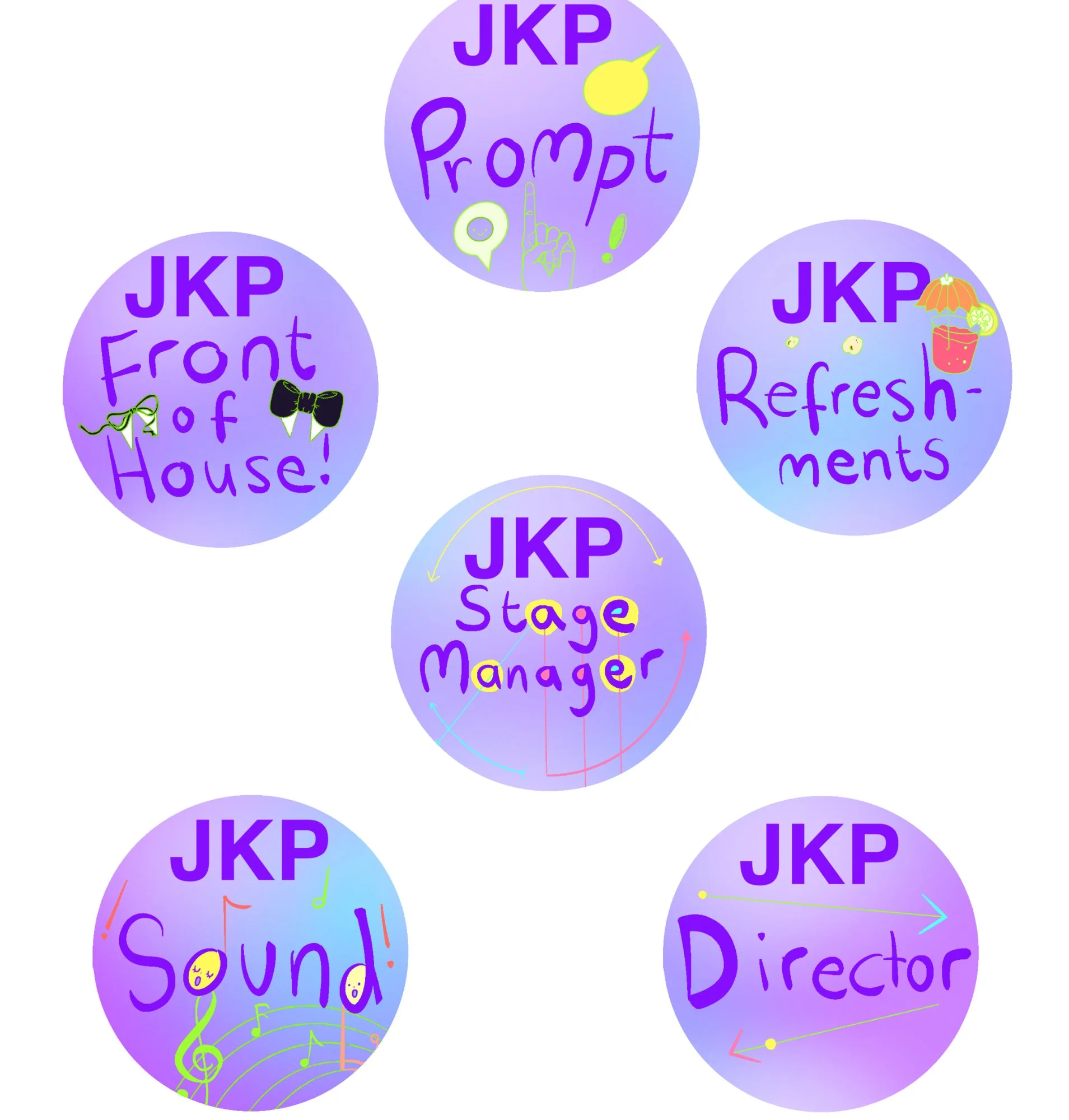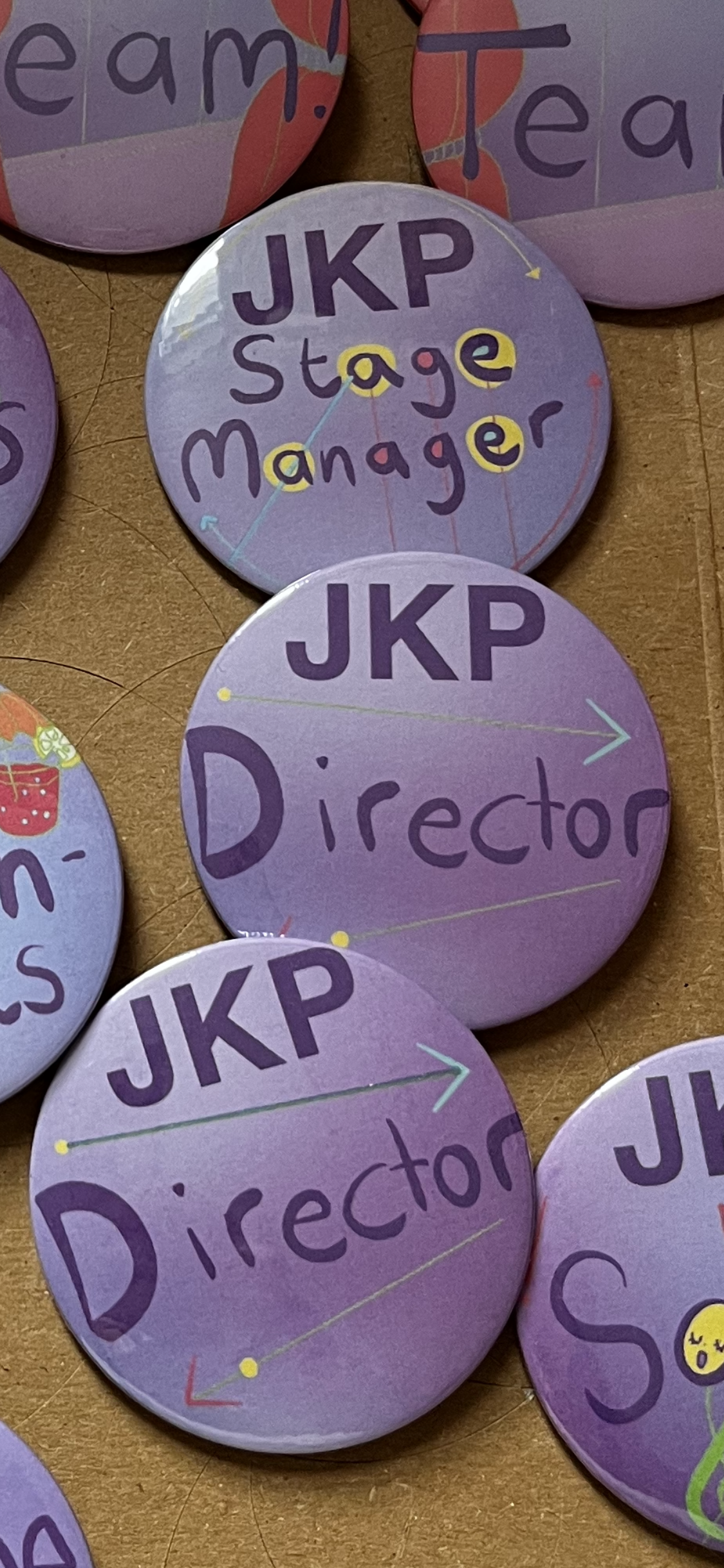 I was commissioned to draw and make 17 illustrated role badges for a theatre group member, who planned to give them as gifts and to help the company be identified more easily, especially in their front-facing work.