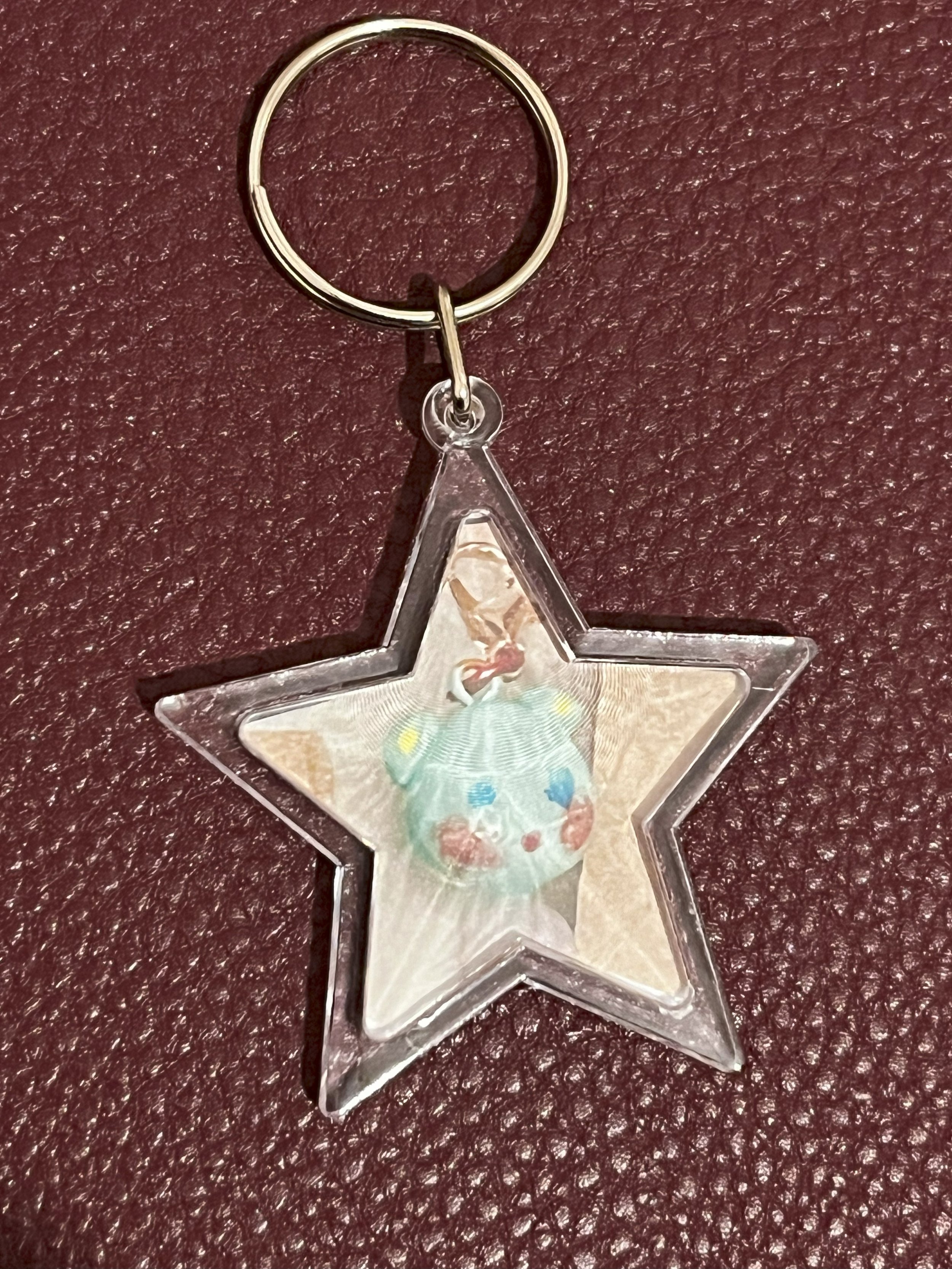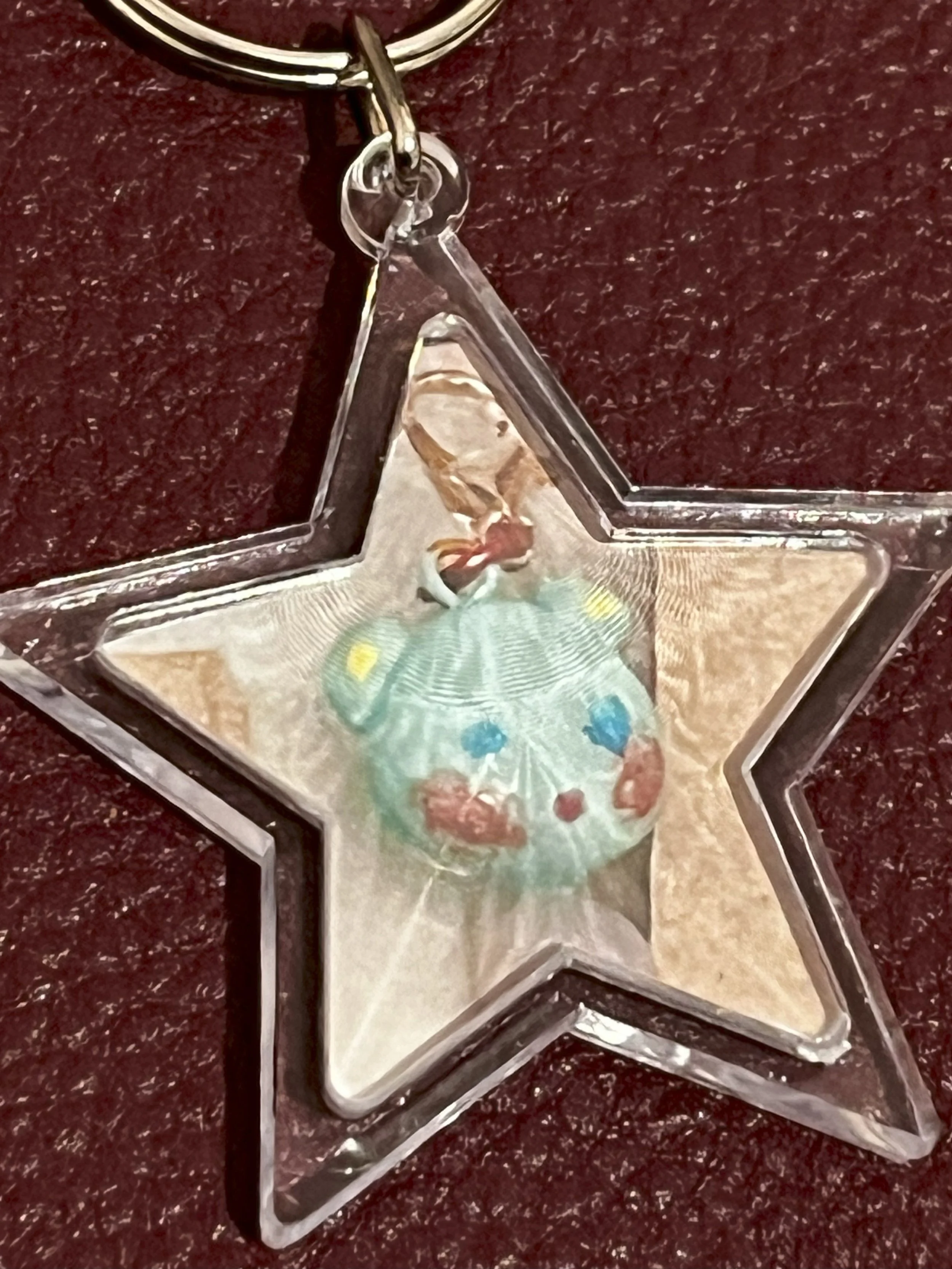 Two pieces of my art as a double-image-keychain, one on each side. It was fun matching up 2 of my drawings into one theme! Sanded edges on some, added a little glitter or gel pen on some, would love to add beads and charms now that I have more time!