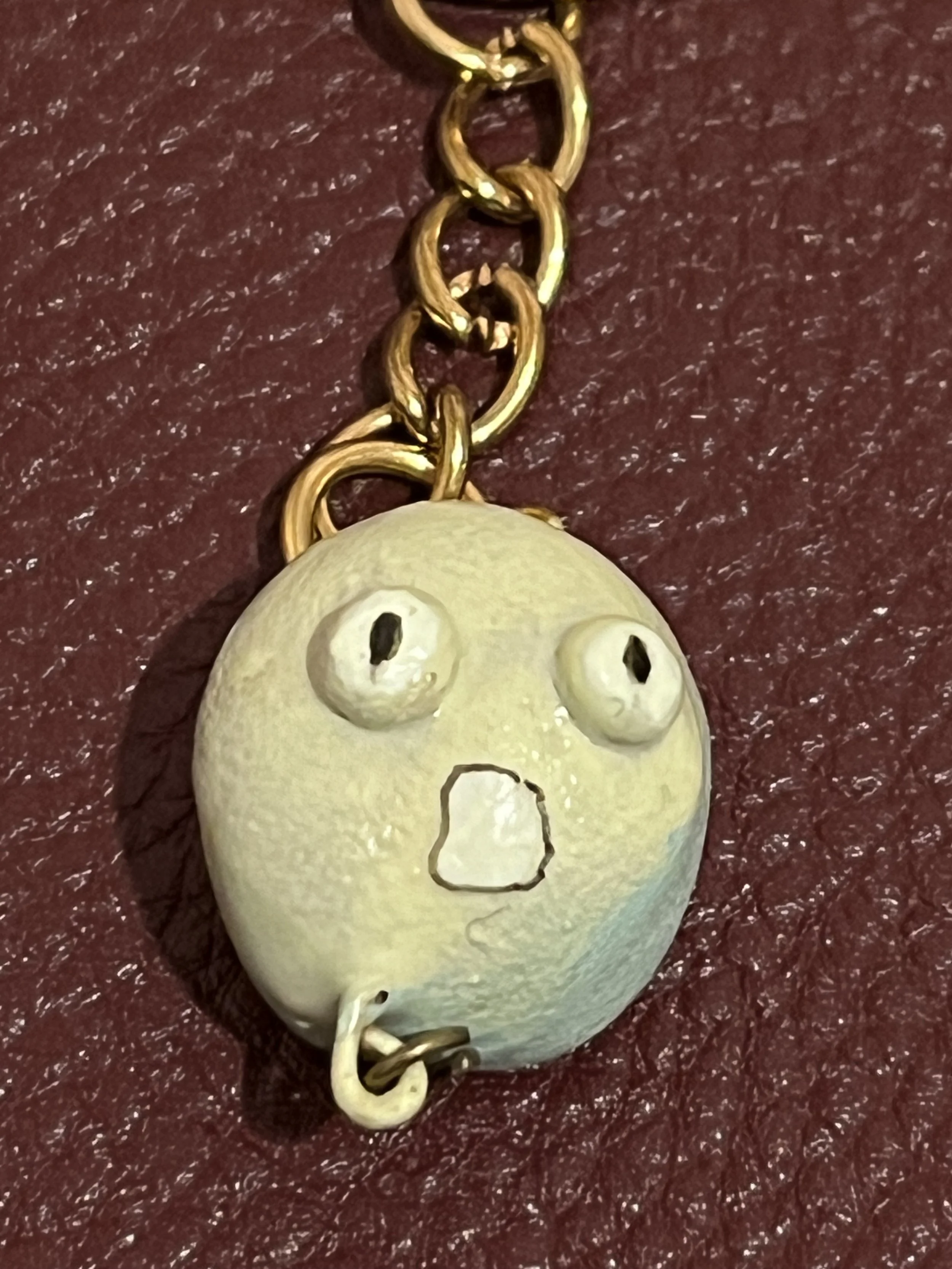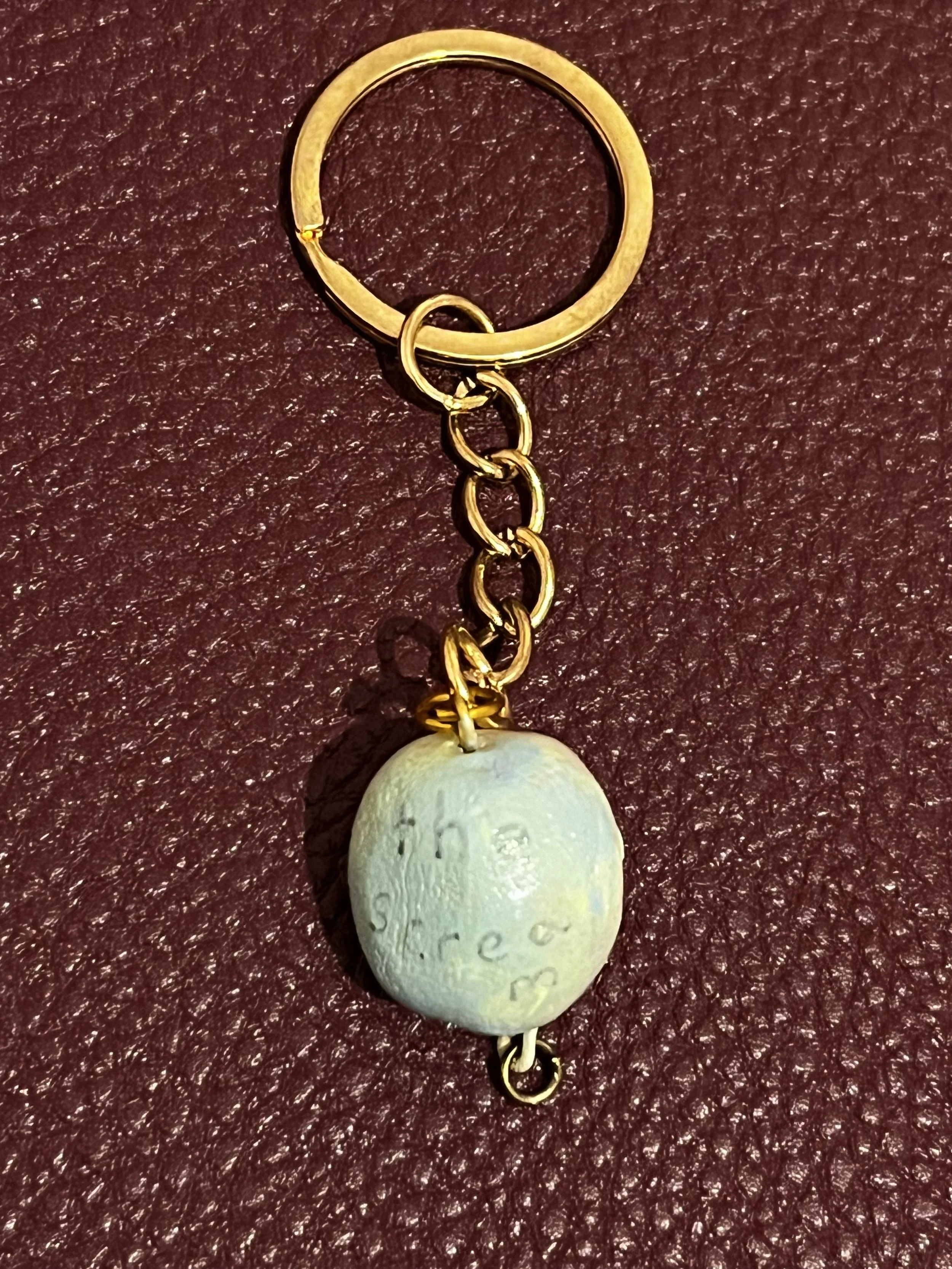 Slide 1 Slide 1 (current slide) Slide 2 Slide 2 (current slide) Slide 3 Slide 3 (current slide) Slide 4 Slide 4 (current slide) Slide 5 Slide 5 (current slide) Based on Edvard Munch’s iconic ‘The Scream’ painting. 2025. Air-dry clay, Sakura gelly-roll pens, acrylic paint, Copic fineliner, keychain.